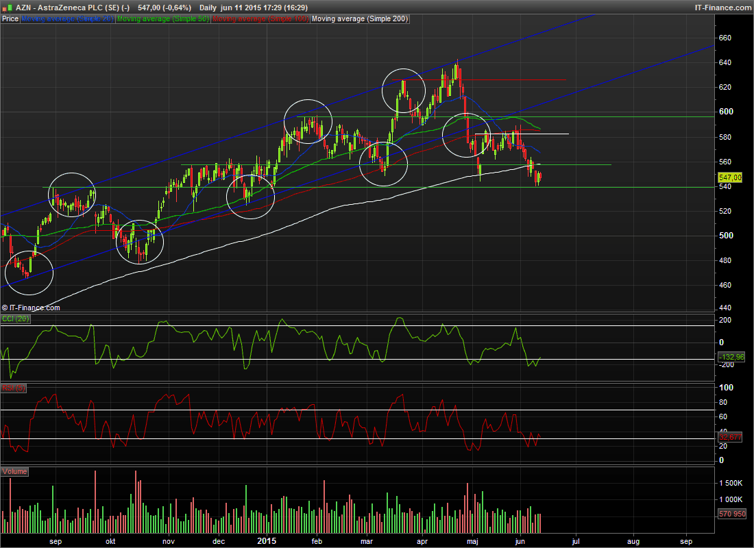 Astra befinner sig under det långsiktiga glidande medelvärdet på 200 dagar som kan indikera på trendskifte eller så är det ett köpläge och en falsk säljsignal.