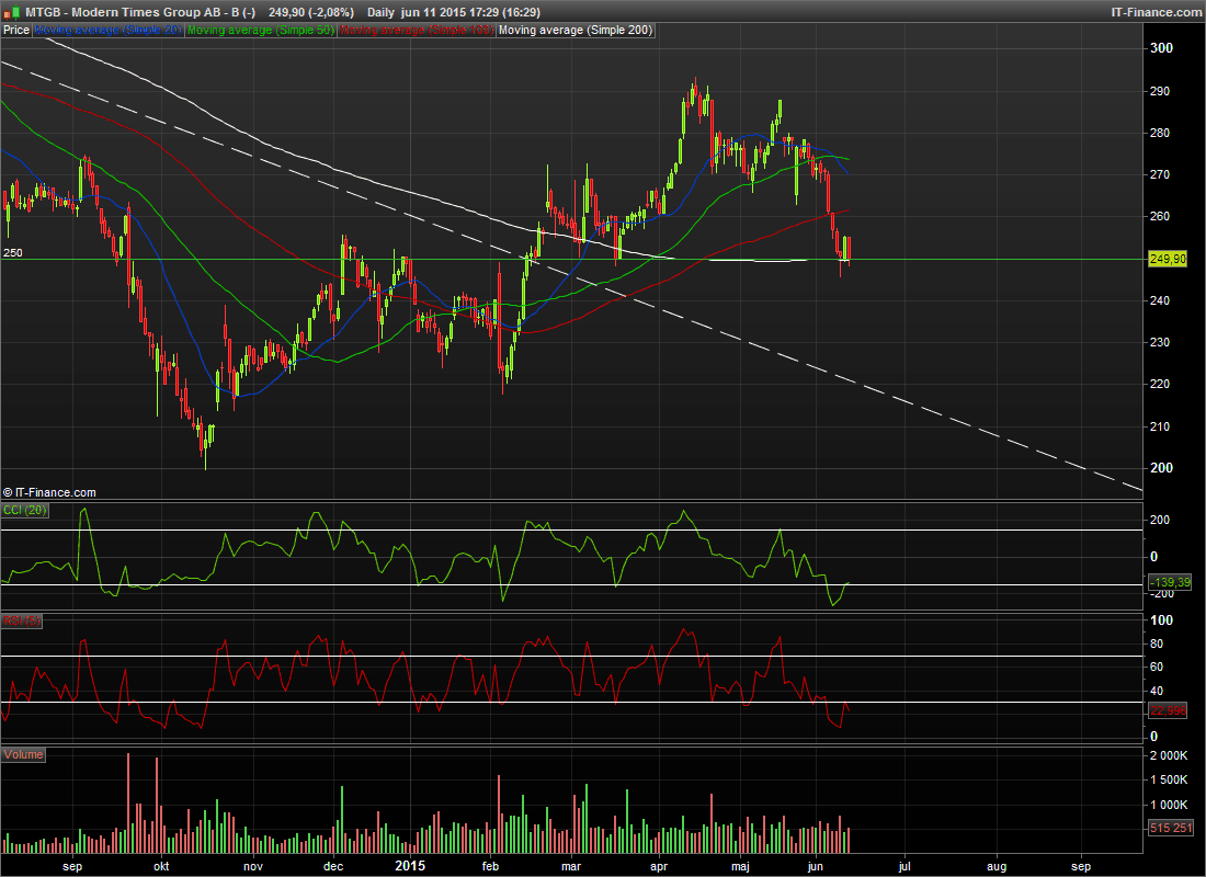MTG har för en period sedan brutit upp genom det långsiktiga MA200 och det agerar nu även stöd hos denna aktie.